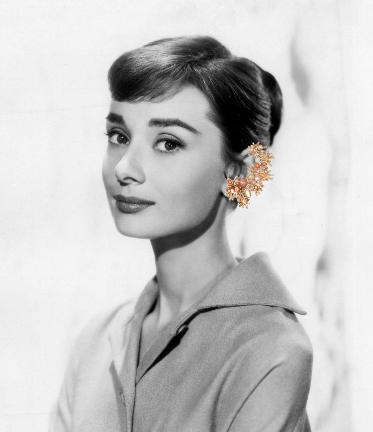 Audrey Hepburn lleva earcuff de Chanel.