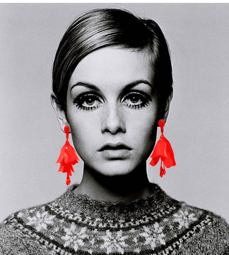 Twiggy lleva pendientes de Oscar de la Renta.