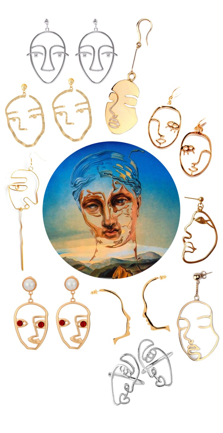 Dicho esto, volvamos a las caras. ¿Qué os parecen? Son todas preciosas, ¿verdad? 💛 A mi hermana le acabé regalando los primeros pendientes, y a mí misma me he regalado los anillos plateados. No sé qué tiene esta tendencia que me ha gustado tanto. Supongo que es el hecho de que sea algo diferente, que sea líneal y que lleve implícito algo de diseño con un toque artístico (el cuadro del collage es El nacimiento de una divinidad, de Dalí). Así que no descarto ir haciéndome poco a poco con toda la colección.